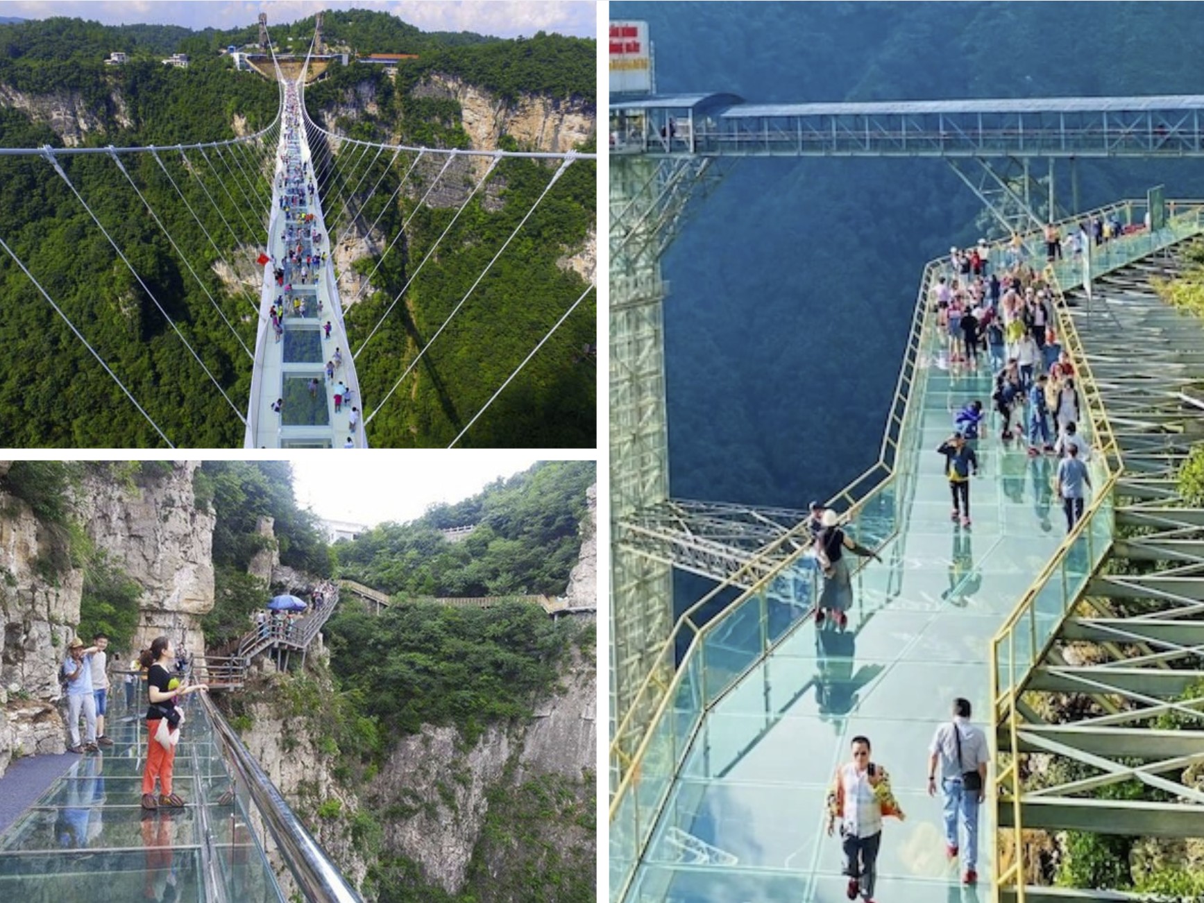 - Lan can cầu kính được làm bằng kim loại, không quá cao. Hãy giữ bình tĩnh ở độ cao này và tránh di chuyển gần khu vực lan can.