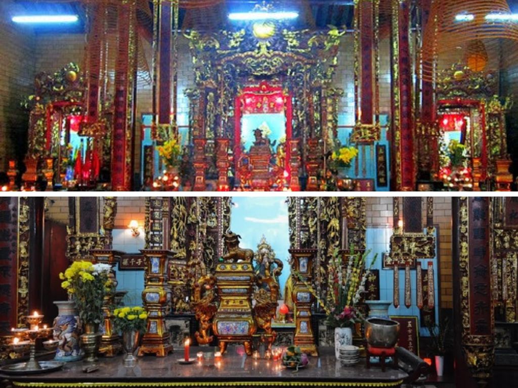 - Giữa: Thờ Quan Thánh Đế Quân (Quan Công),biểu tượng của lòng trung thành.