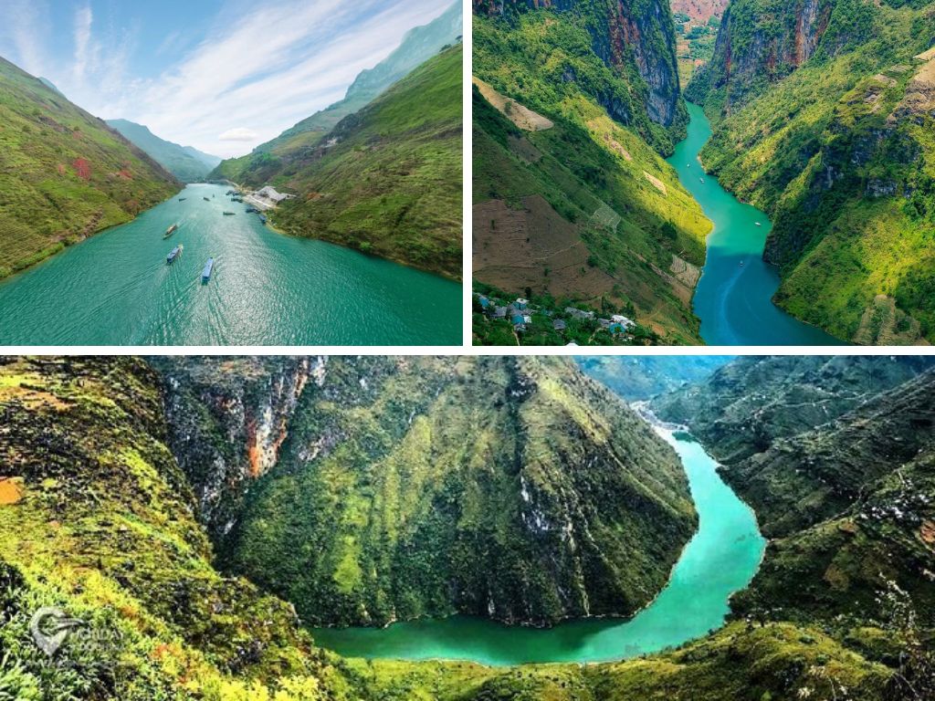 Sông Nho Quế hiện lên như một bức tranh tuyệt đẹp, với dòng nước xanh ngọc hòa quyện cùng sắc xanh tươi mát của núi rừng và thảm thực vật tại hẻm núi Tu Sản. Từ đỉnh đèo Mã Pí Lèng, bạn sẽ không khỏi trầm trồ trước cảnh quan ngoạn mục của dòng sông uốn lượn mềm mại. Để cảm nhận trọn vẹn vẻ đẹp thiên nhiên nơi đây, hãy tham gia vào một tour du thuyền.