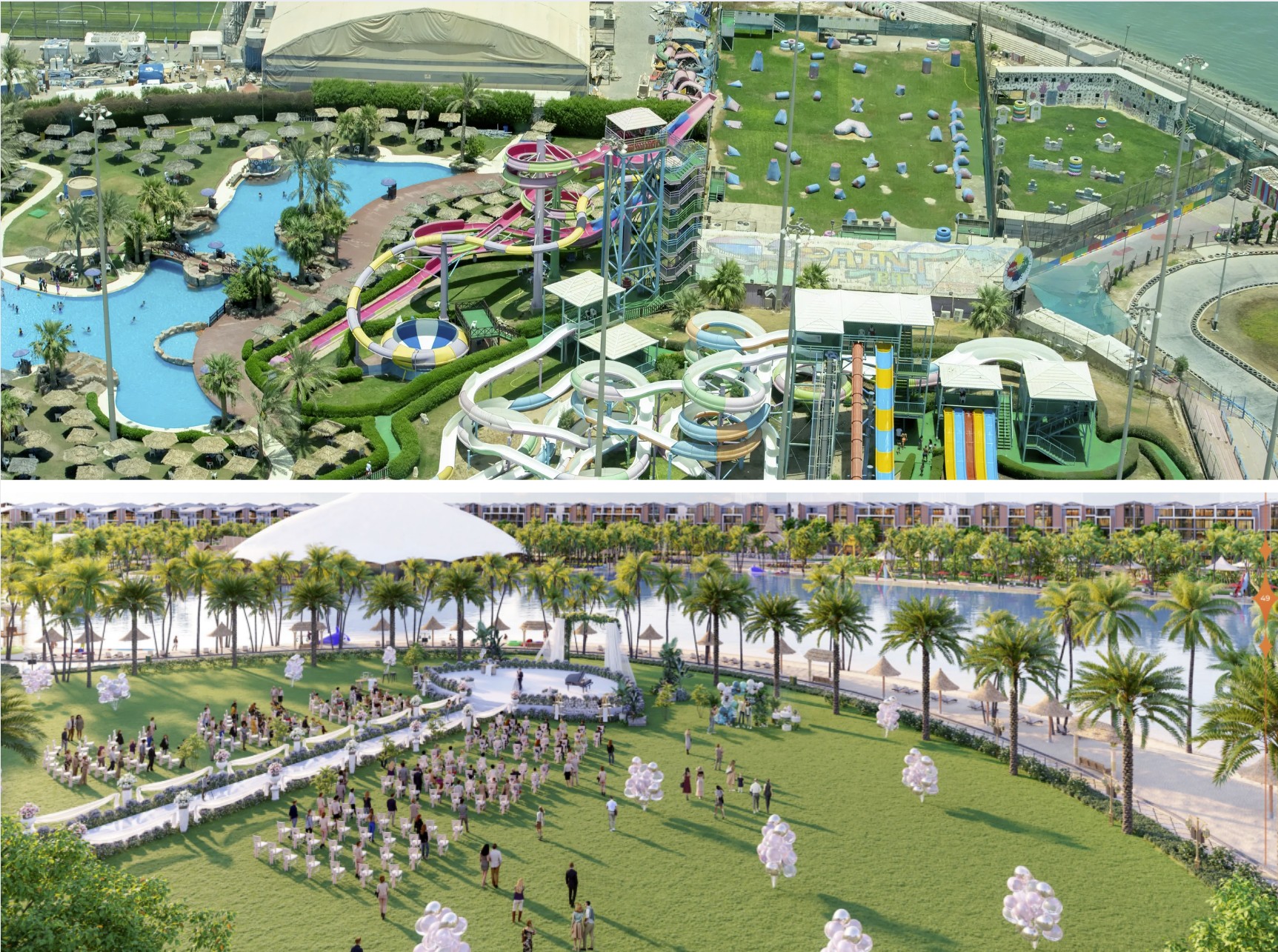 Cả hai hồ đều có nước mặn tương đương biển tự nhiên, hệ thống sóng hiện đại, và các hoạt động thú vị như chèo thuyền kayak, lướt ván, bóng chuyền bãi biển và đua moto nước. Ngoài ra, xung quanh hồ có ghế dài và ô dù, tạo không gian thư giãn tuyệt vời.