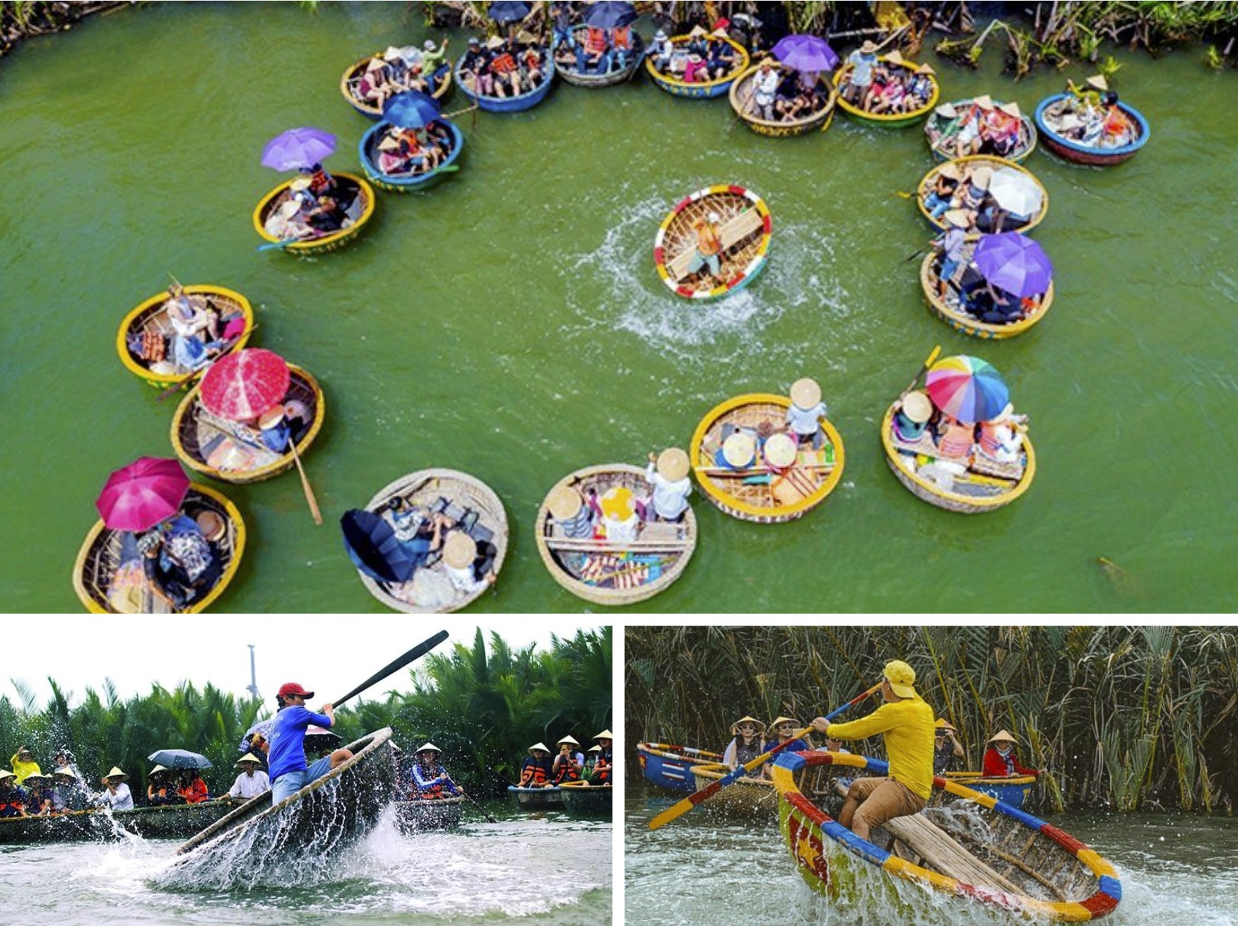 Thưởng thức những màn trình diễn múa thuyền thúng đầy nghệ thuật và những cuộc đua thuyền sôi động. Bạn sẽ không khỏi ngạc nhiên trước khả năng giữ thăng bằng của các "nghệ sĩ" trên thuyền thúng nhấp nhô, cùng những động tác nhanh nhẹn, uyển chuyển. Hãy cổ vũ thật nhiệt tình để tạo thêm không khí vui vẻ!